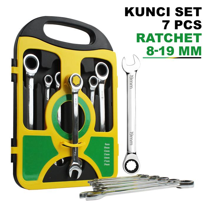TERLARIS KUNCI RING PAS RACHET SET 7 PCS CROME VANADIUM DILENGKAPI DENGAN BUSUR 5 DERAJAT67196719