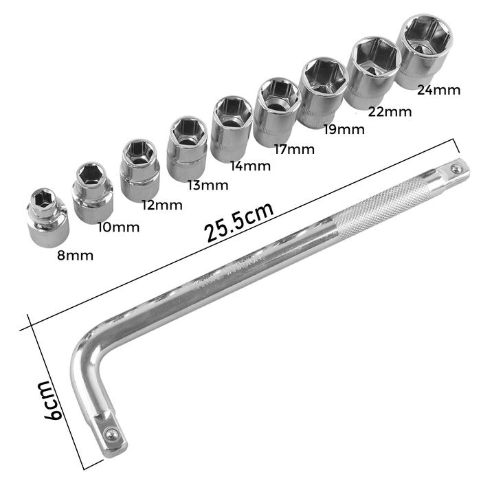 TERLARIS KUNCI SOK 10PCS SET ISI UKURAN 824 MULTIFUNGSI G10017MERAH