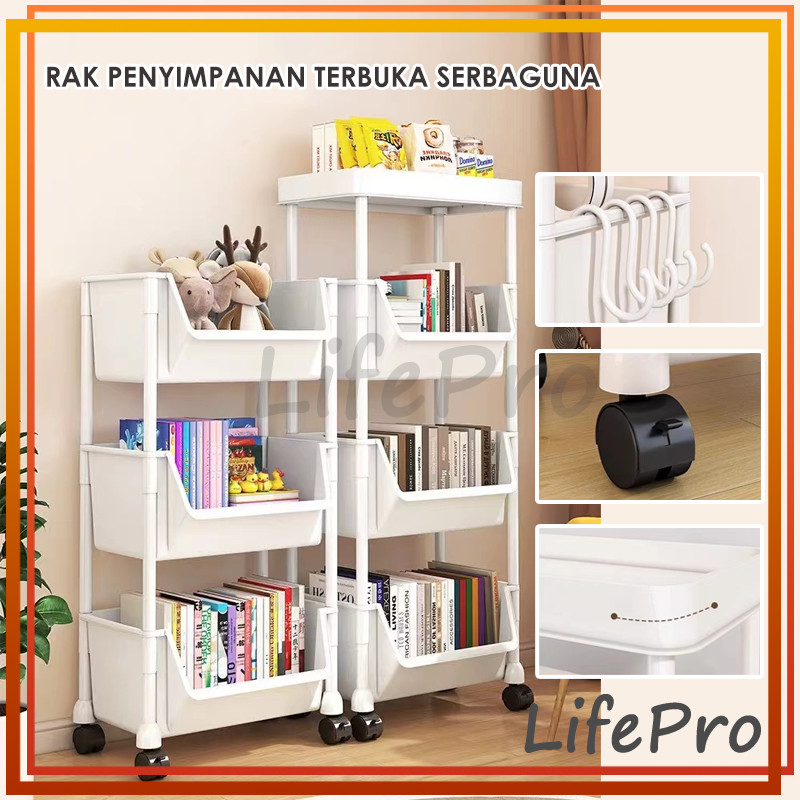 rak susun Buku Plastik Rak Portable / Roda Toy Storage Rak / Rak Dapur Serbaguna Rak Troli Rak Kamar Mandi Rak Susun Pla