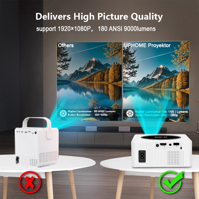 【NEW UPGRADE】UPHOME Proyektor Android TV 1080P HDMI 9000 Lumen Smart Projector Android 13.0 Ram 2G Rom 16G Home Theater