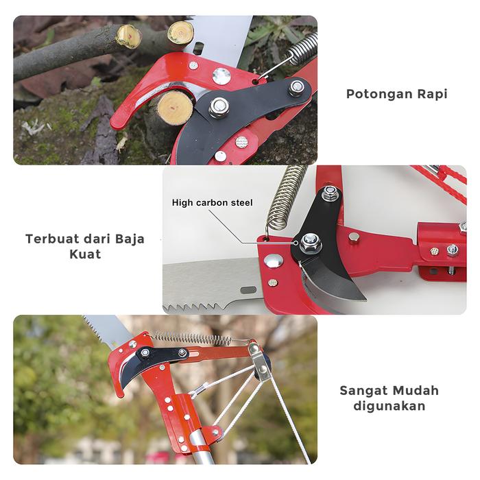 TERLARIS PERALATAN BERKEBUN TREE PRUNER SAW DAHAN PLUS TALI TARIK POTONG DAHAN RANTING MULTIFUNGSI6530MERAH