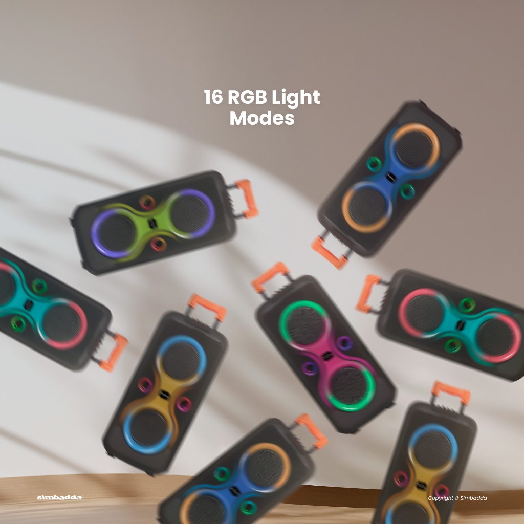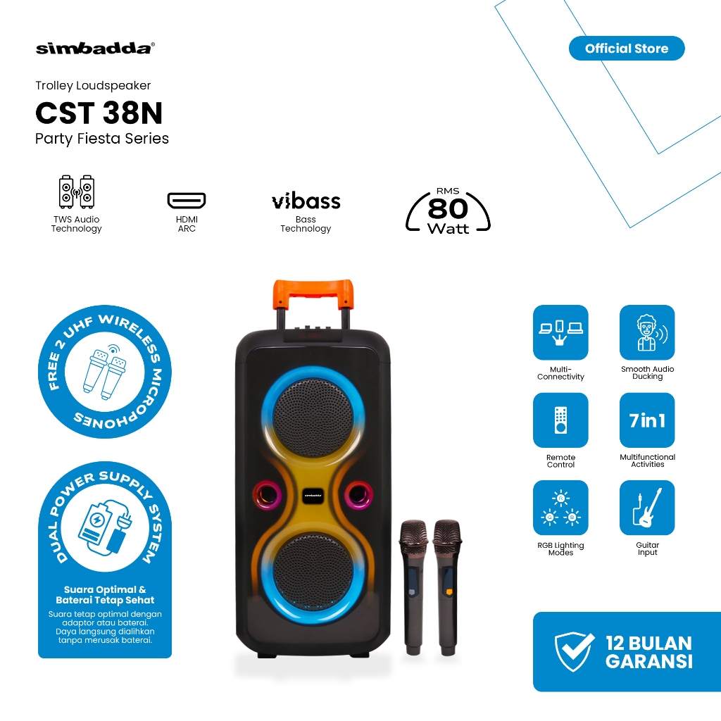 Speaker Karaoke Bluetooth Mega Bass RGB TWS Simbadda CST 38N Trolley Gratis Ongkir