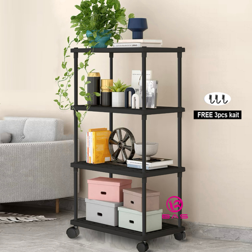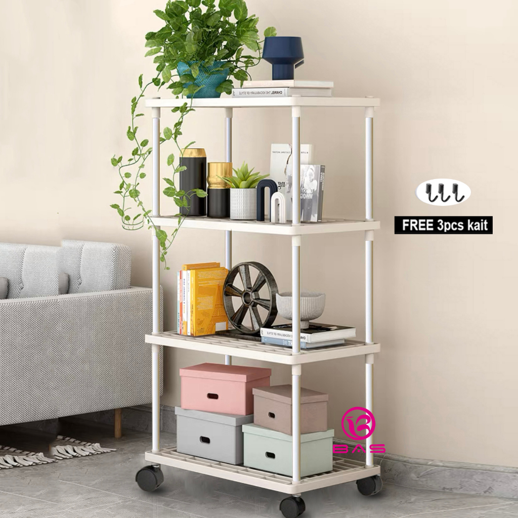 rak susun BAS rak susun serbaguna rak dapur plastik rak kamar mandi 4 tingkat free 3 cantolan dengan roda