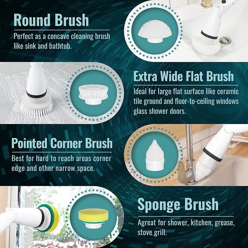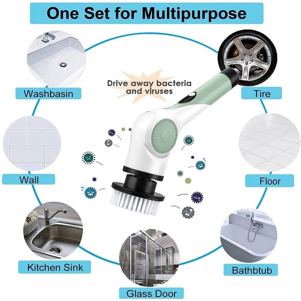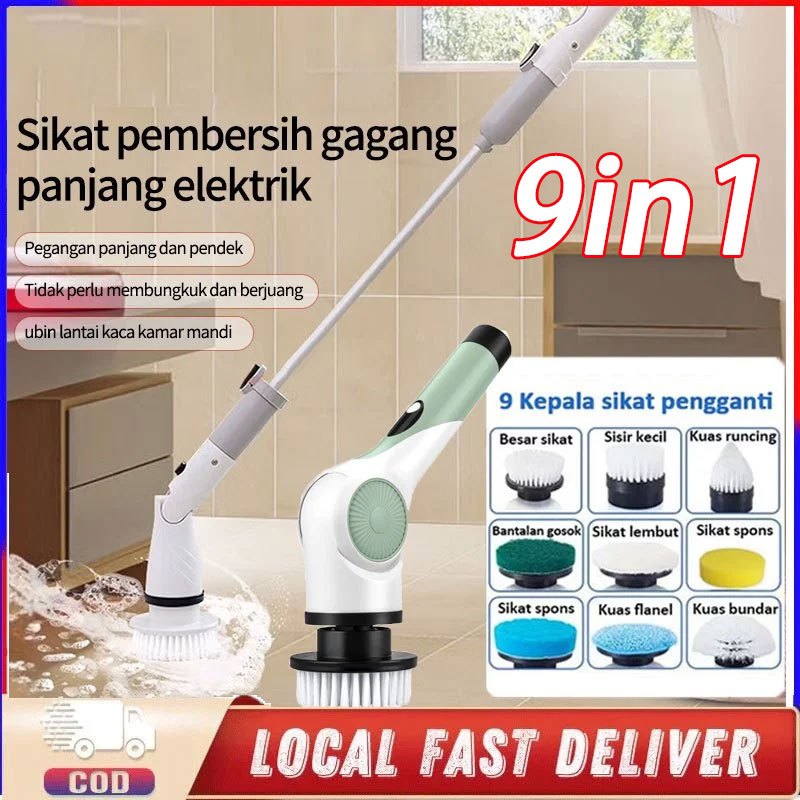 Sikat Pembersih Elektrik 9IN1 Sikat Kamar Mandi Otomatis Multifungsi Electric Cleaning Brush
