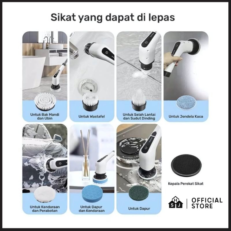 Electric Spin Scrubber Sikat Pembersih Tanpa Kabel 8 Kepala Sikat / 8IN1 Portable Electric Cleaning Brush