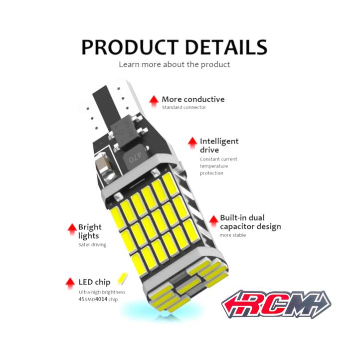 TERLARIS 1BIJI BOHLAM BOLAM LAMPU PREMIUM SEIN SEIN KABIN DAJJAL 45 LED T10 T15 W16W SUPER TERANG 1224VOLTPUTIH