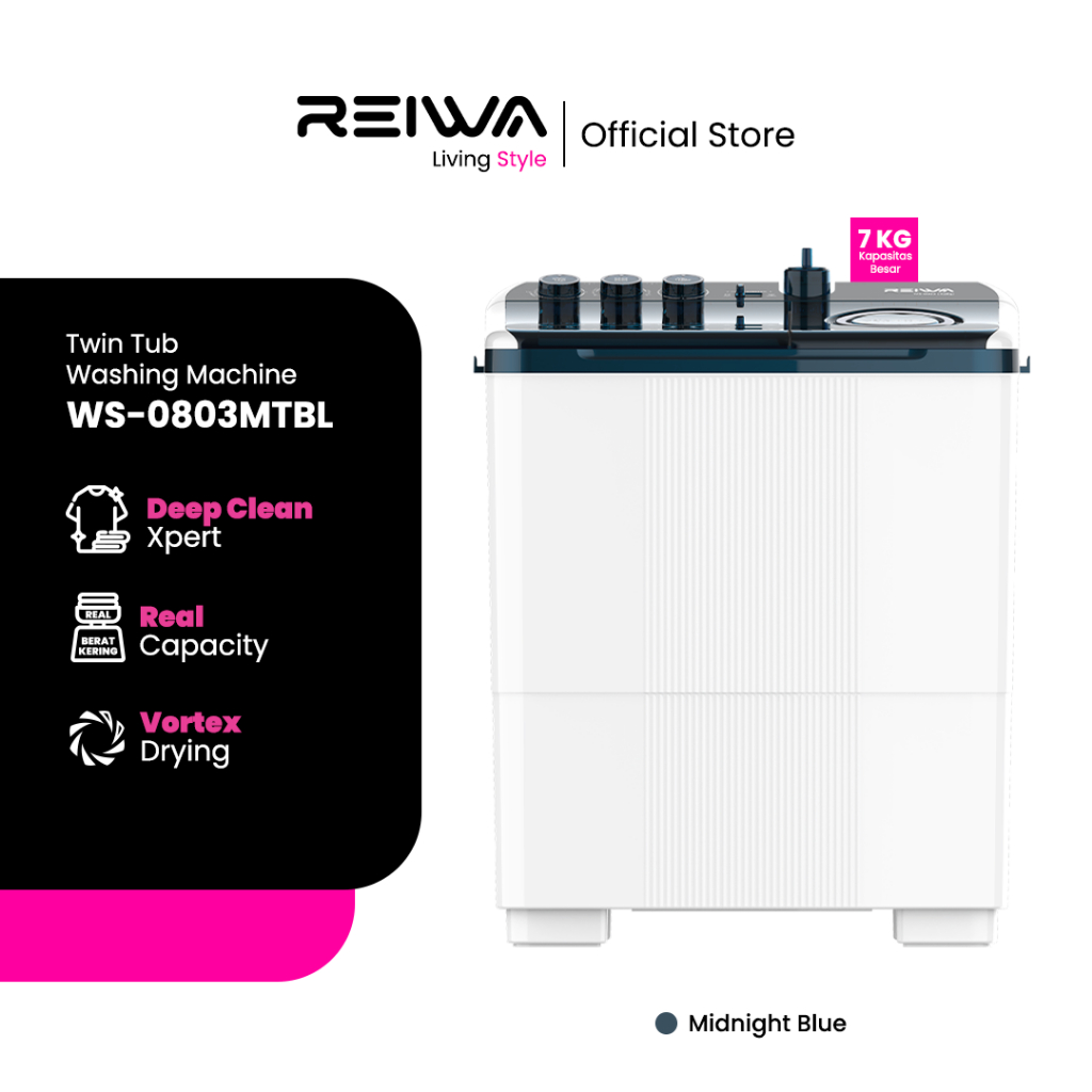 MESIN CUCI 2 TABUNG REIWA 7 KG WS0803MTBL MIDNIGHT BLUE LOW WATT TERBARU GARANSI RESMI MURAH