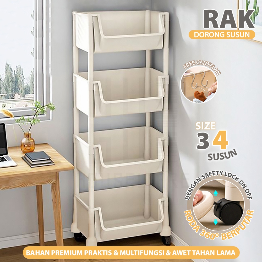 ra susun Hoptech - Ra Susun Serbaguna 3-5 Tingat dengan Roda Portable untu Buu Mainan & Penyimpanan