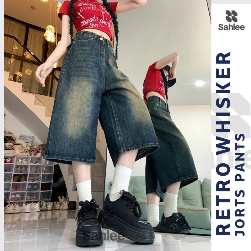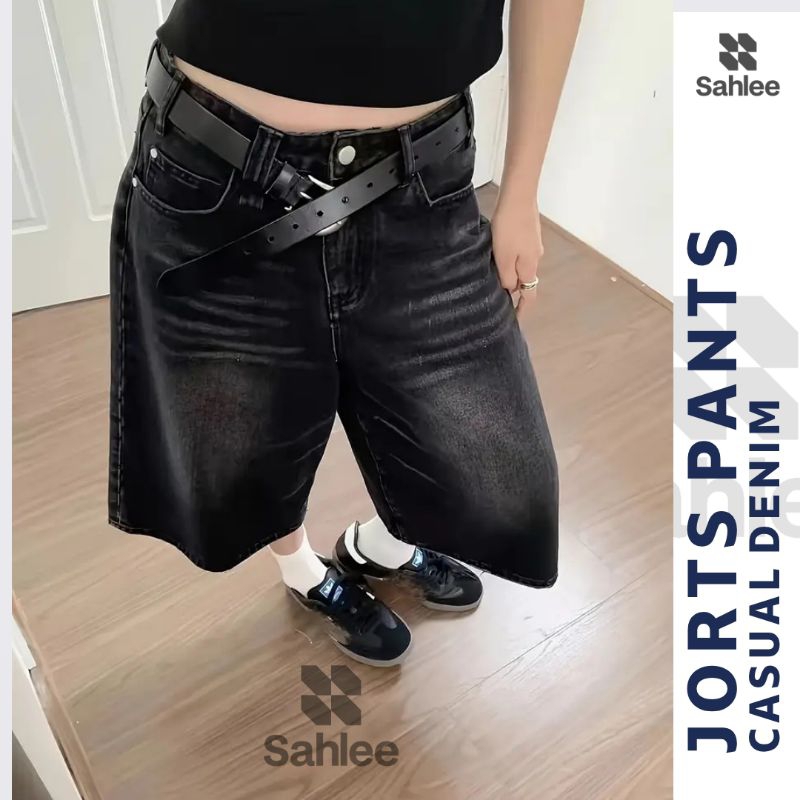 celana baggyCelana Jorts Jeans Baggy Loose Panjang Wanita - SAHLEE Celana Jeans Wanita 7/8