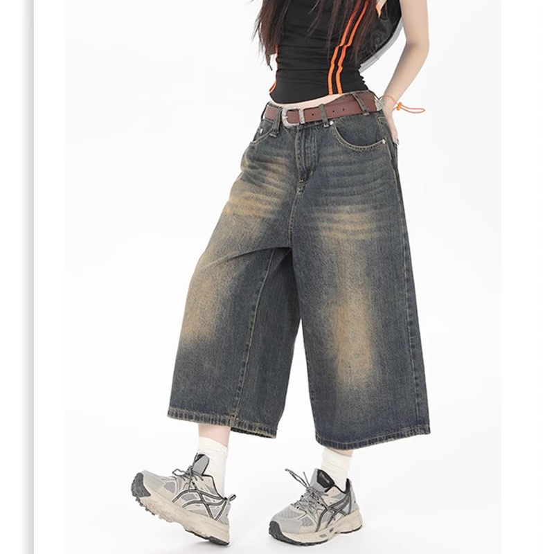 celana baggyeygirl jumbo 5XL Celana Jeans Jorts panjang 7/8 wanita orean style casual vintage baggy pants denim ulot dew