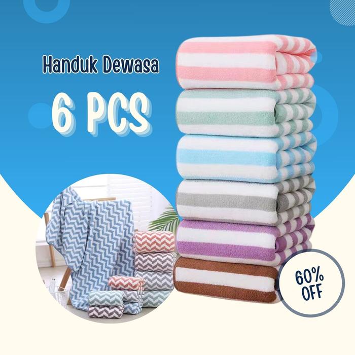 6pcs Handuk Dewasa Ukuran 70x140cm Motif dan Warna Random Hadiah Kado