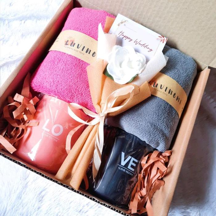 Hampers pernikahan,hampers wedding handuk cangkir couple Gift Hadiah
