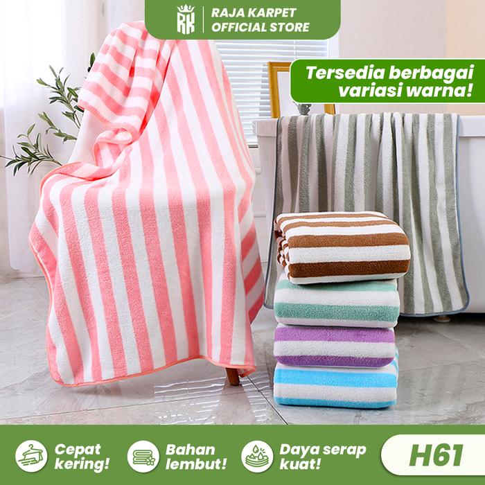 RAJA - PAKET 3 PCS Handuk JUMBO Polyester Microfiber Bulu Halus Lembut Motif Salur / Garis Handuk