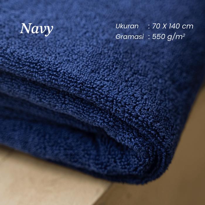 Handuk Hotel Premium (70 x 140cm) 550gsm BATH WELL Navy Blue Lembut, Tebal & Anti Bakteri SILVERPLUS