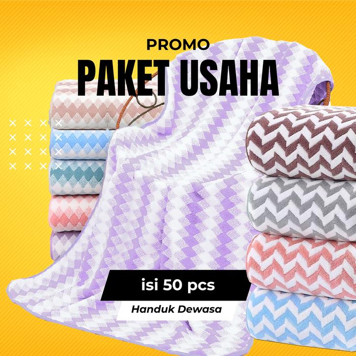 KUP - PAKET USAHA HANDUK ISI 50 PCS - HANDUK MICROFIBER 70 X 140 CM MOTIF RANDOM