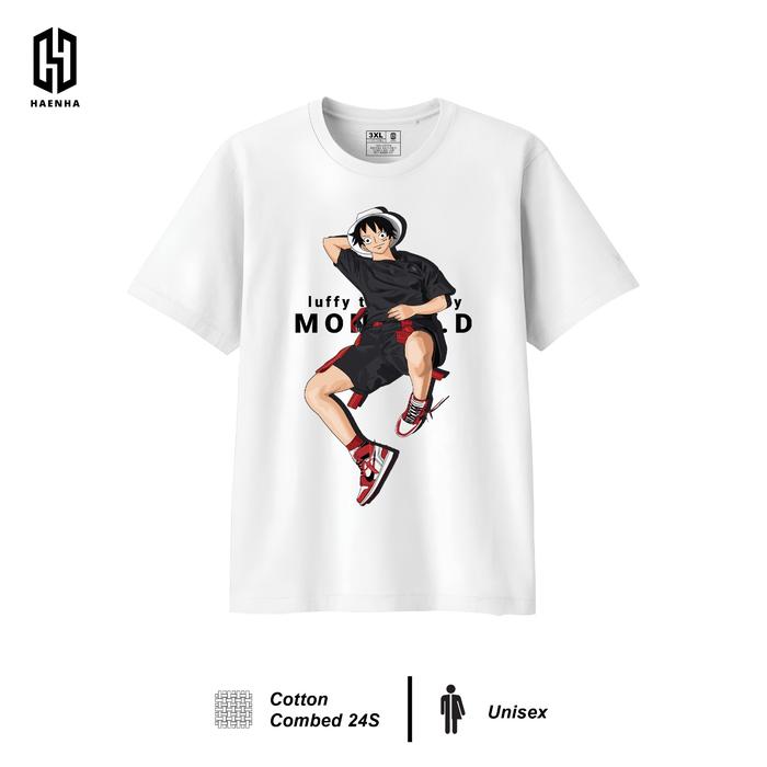 Haenha Tshirt Motif Luffy One Piece Kaos Pria dan Wanita Sablon Printing Baju Combed