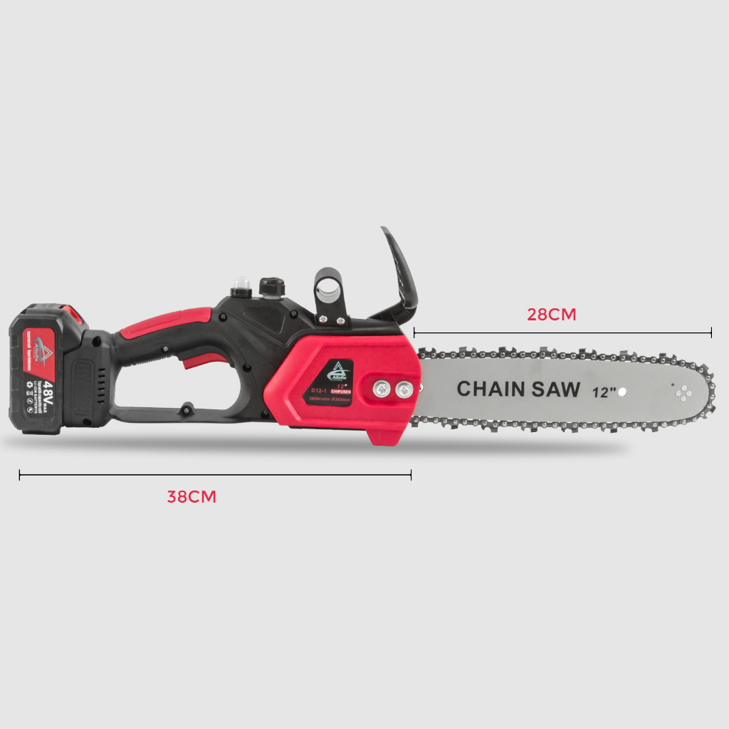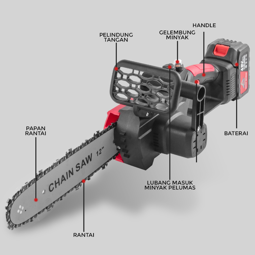 Gergaji Rantai Elektrik Mini 12 Inch 2 Baterai 48V -6643 Allefix Chainsaw Cordless Gratis Ongkir