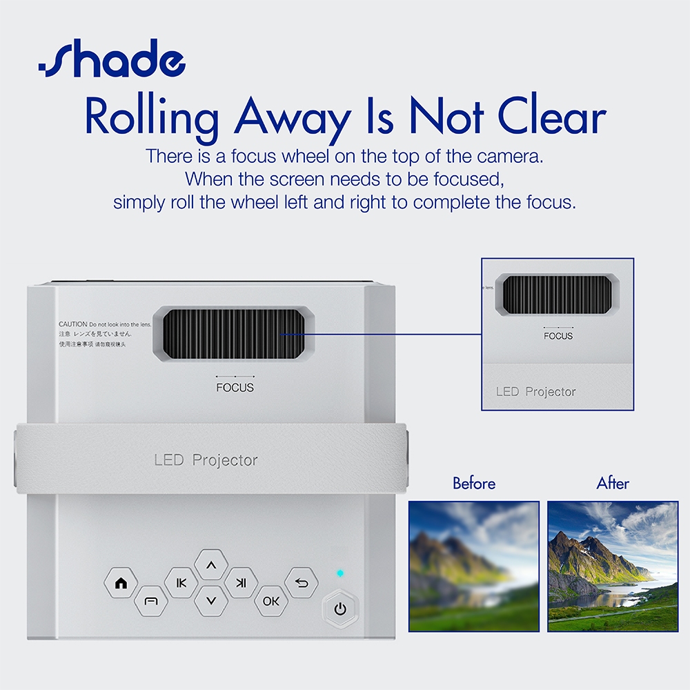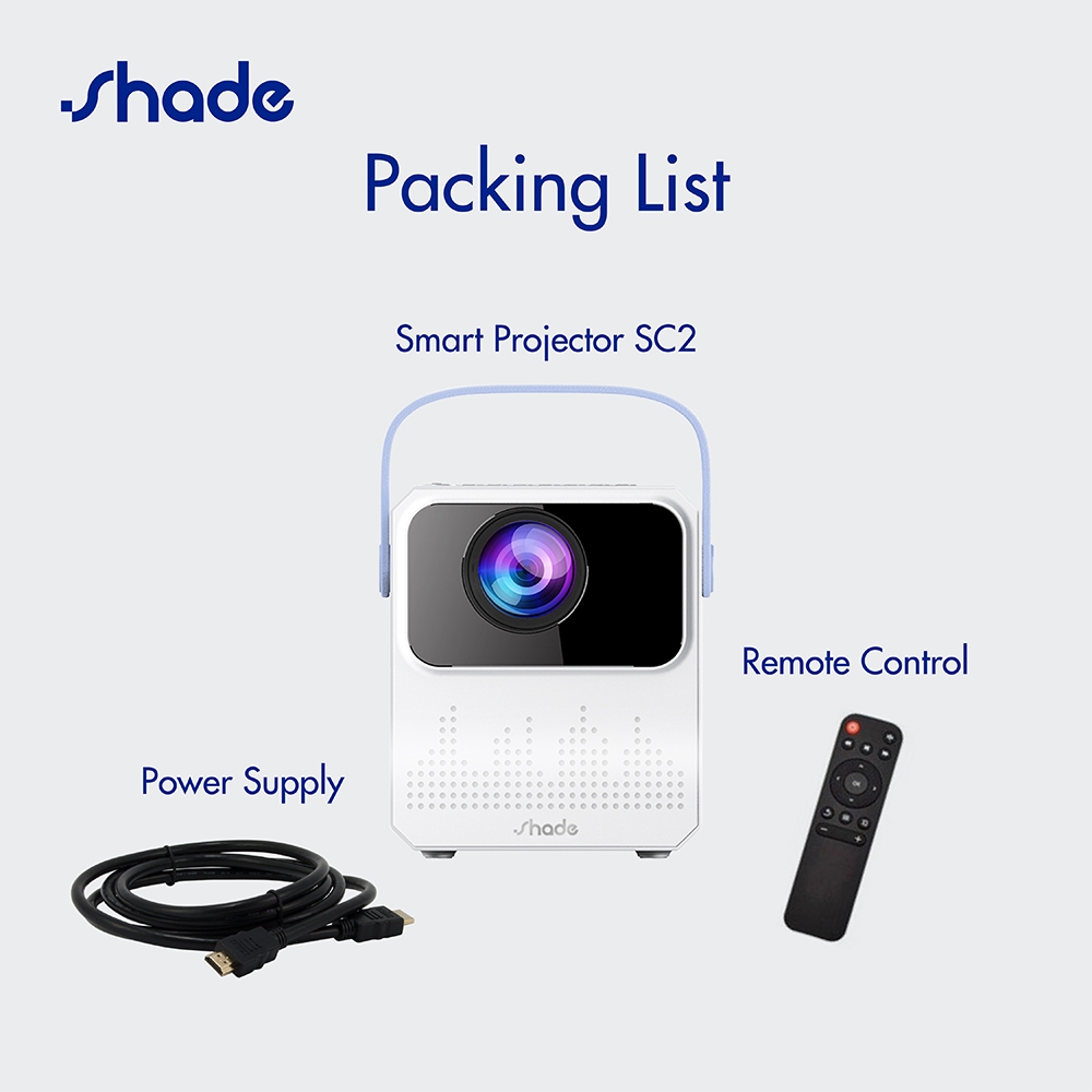 SHADE Android Proyektor TV T2mini 6000 Lumen 4K HD Bluetooth Smart Projector Android 9 2G+16G Mirroring HP Proyektor
