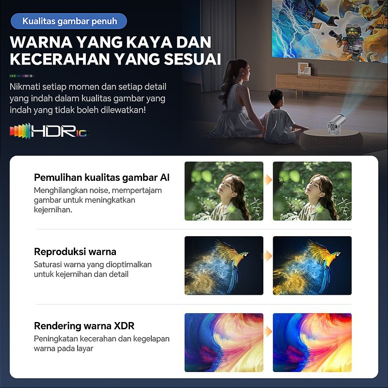 Smart Proyektor LCD Android13- 1080P - Pro Proyektor 4K Kamar Tidur Rumah Proyektor 5G Kotak Android Kotak Android Teate