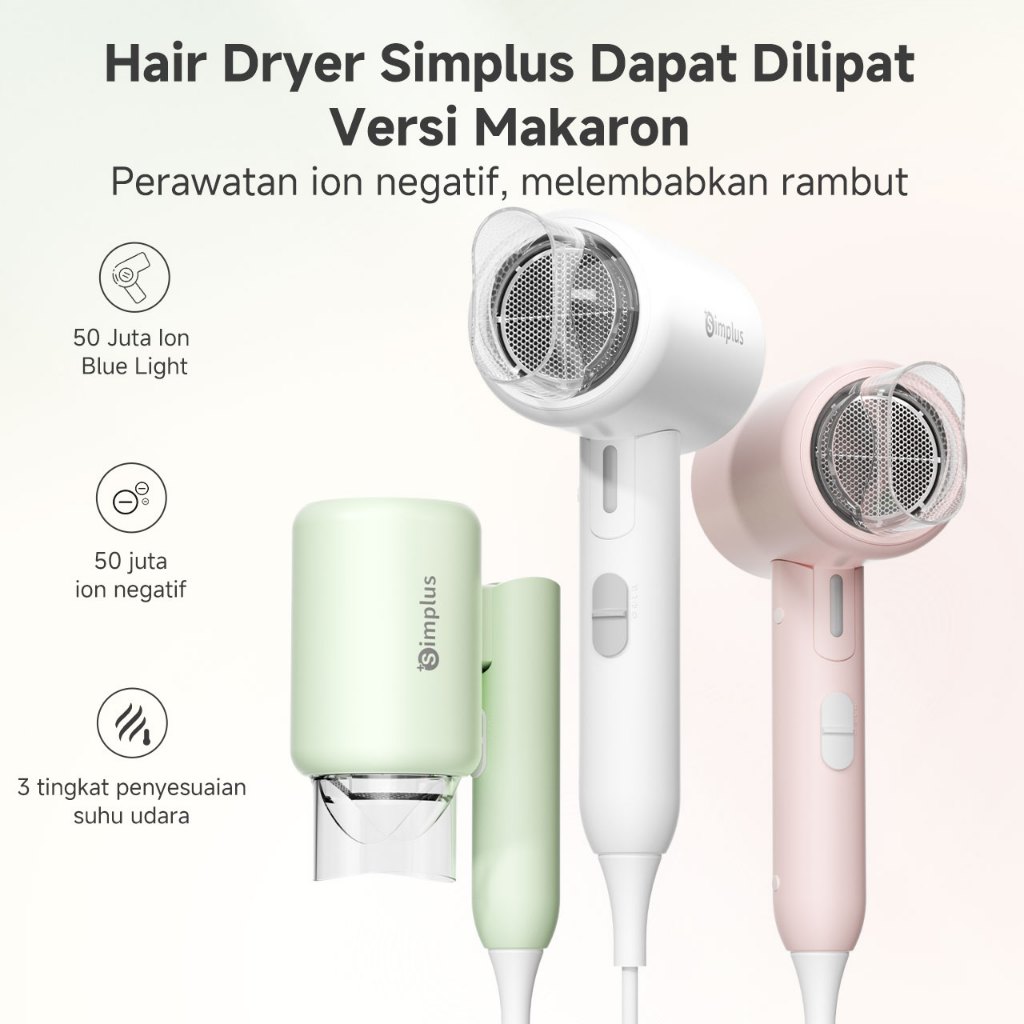 Simplus Pink Hair Dryer Foldable Dapat & Ion Negatif & Strong Wind & Low Watt