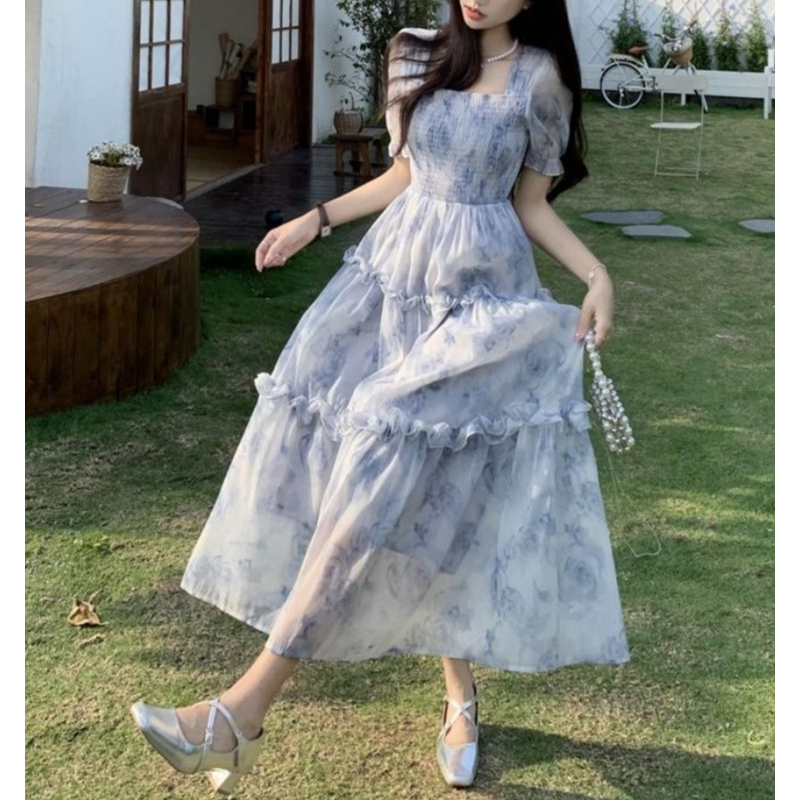 [Star] EMITA BLOOM baju pantai wanita floral dress hitam panjang party elegan midi dress jumbo korean style - Axs11