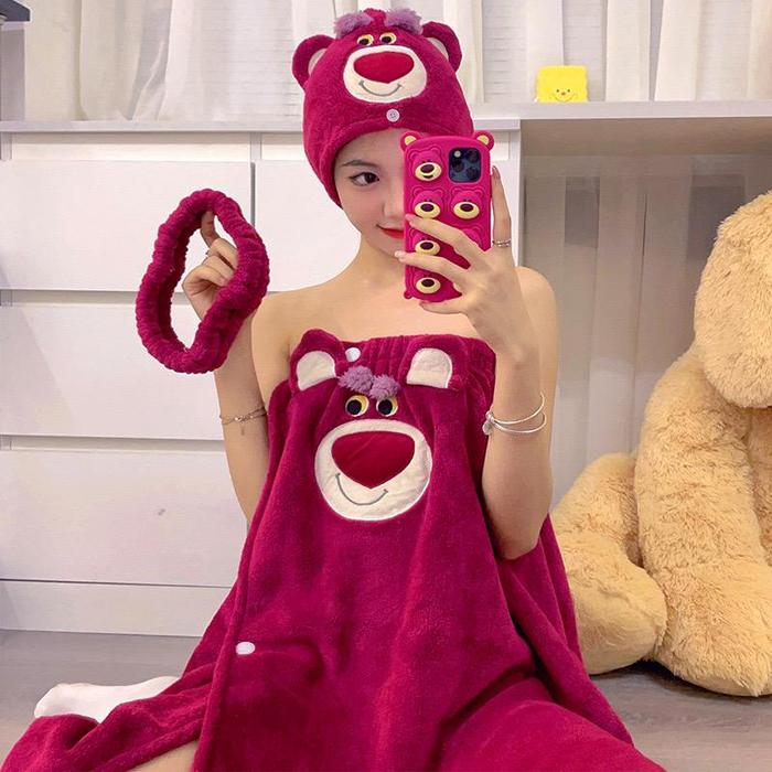 FH Handuk Karakter Kuromi / Lotso Set 3in1 /Handuk Mandi/Handuk Wajah/handuk Jubah/Bando/Handuk