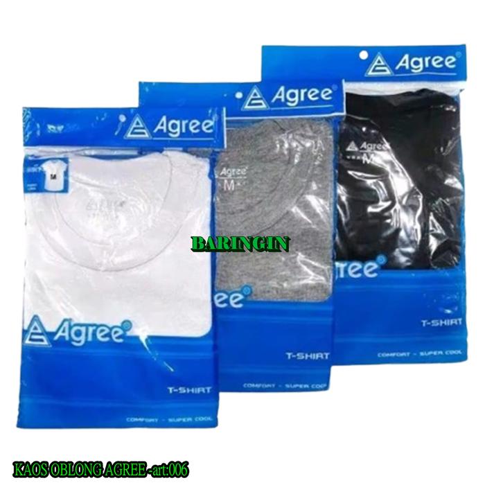 3 Lembar Kaos Oblong Agree Sport art-006-Baju Kaos Polos Pria Dewasa Warna Abu Hitam Putih Katun