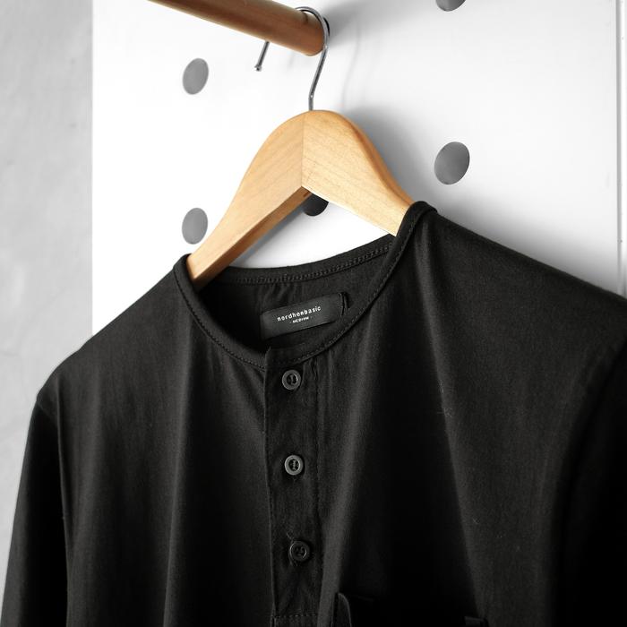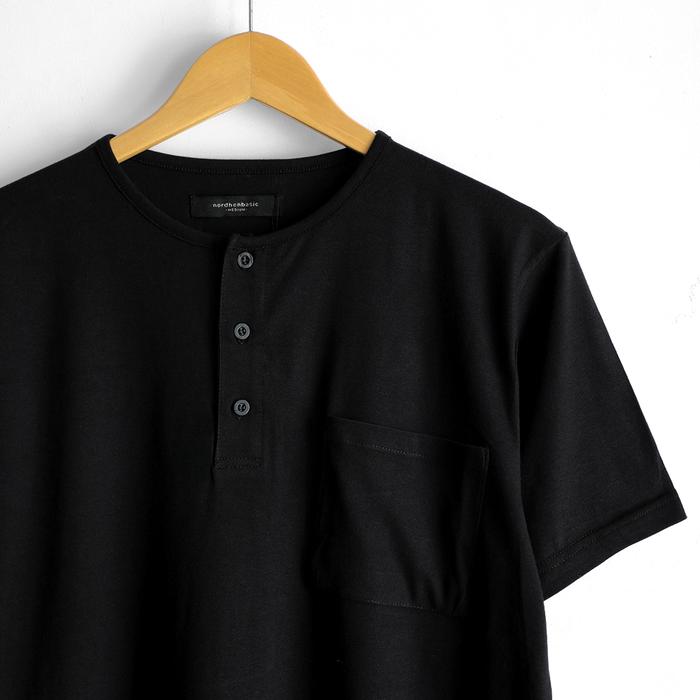 Nordhenbasic Henley Short Black Kaos Kancing Tiga Lengan Pendek Hitam