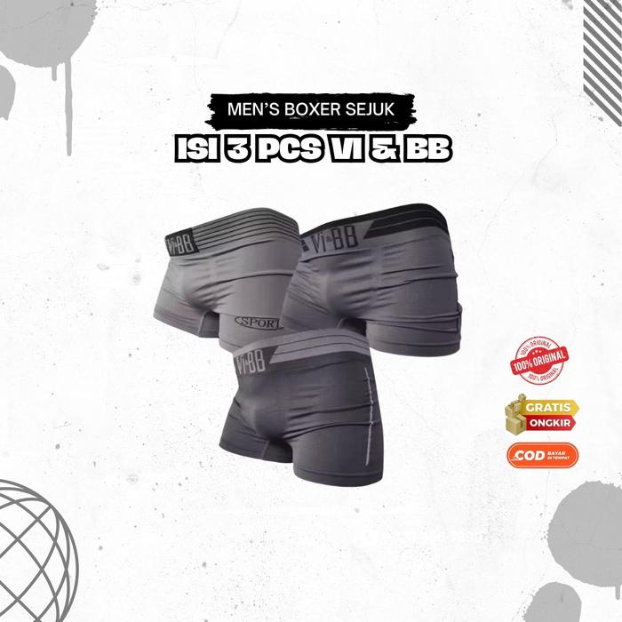 3 Pcs BOXER CELANA DALAM LAKI LAKI Vi & BB SPANDEX ELASTIS BRANDED Basic / Celana dalam pria Dewasa