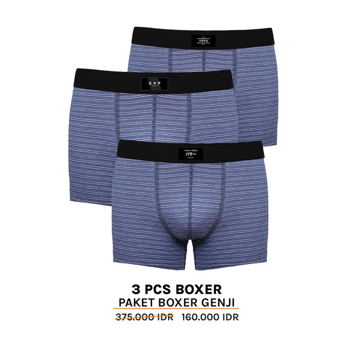 Paket Boxer Genji Navy (3 Pcs) - Lembut