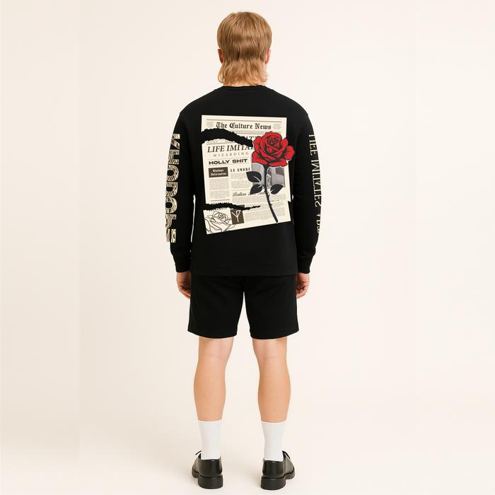 RHODOPE Kaos Longsleeve Art Zine Baju Cowok Distro Oversize lengan Panjang Hitam Combed Pria Wanita