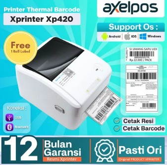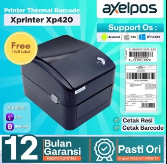 Axelpos PRINTER BARCODE THERMAL LABEL XP-420B 110MM -A6 KONEKSI USB / USB - BLUETOOTH / USB - WIFI
