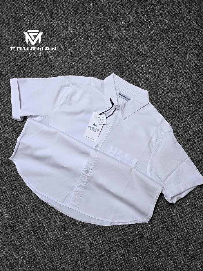 FOURMAN Kameja Lengan Pendek pria Polos Putih / Katun Tuwil Cowok Casual Kerah Nyaman Kemeja Pria