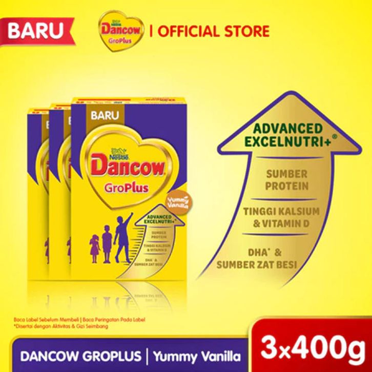 DANCOW GroPlus 400gr x 3 Susu Dancow Untuk 1 Tahun Keatas Rasa Vanilla