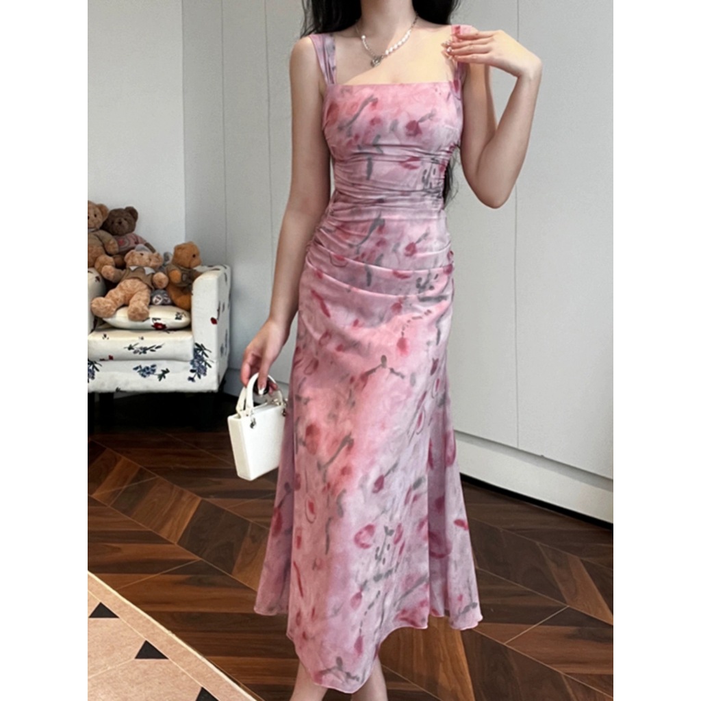[Star] EMITA BLOOM flowy long dress motif bunga pantai Korean Style dress wanita kekinian hijau sage dress press - Ifs14