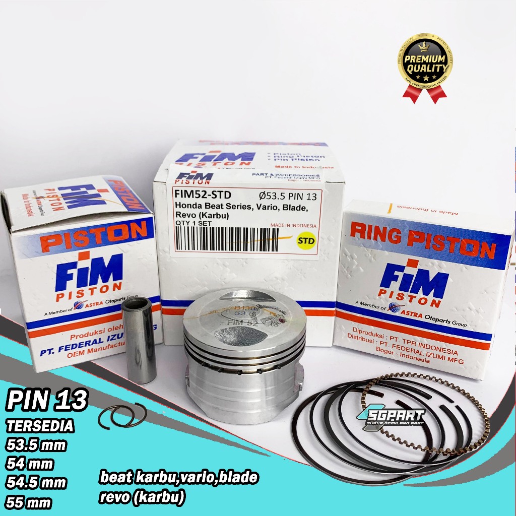 SEHER PISTON SET FIM52 53.5 54 54.5 55 Pin Pen 13 VARIO BEAT KARBU BLADE REVO ABS FIM IZUMI