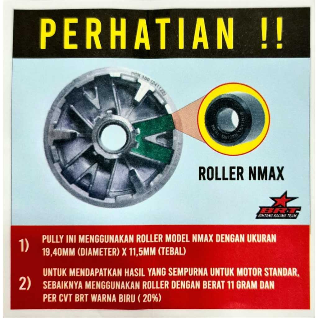 BRT Paket Kirian Pulley Rumah Roller + Pir CVT 10-15 PERSEN + Roller 11Gram Vario 125 150 PCX 150 ADV 150