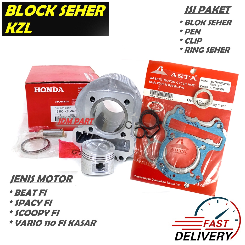 BLOK SEHER HONDA KZL BEAT FI / SCOOPY FI / SPACY FI / KOMPLIT SET PISTON KIT RING SEHER KOMPLIT LENGKAP PISTON KIT RING