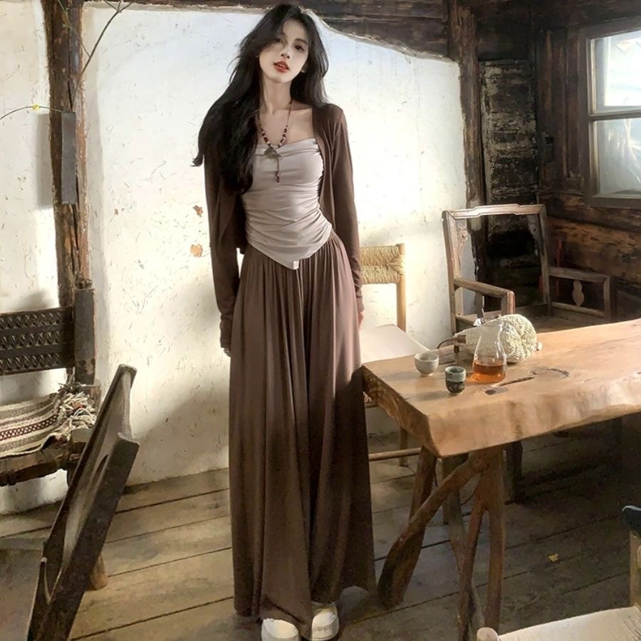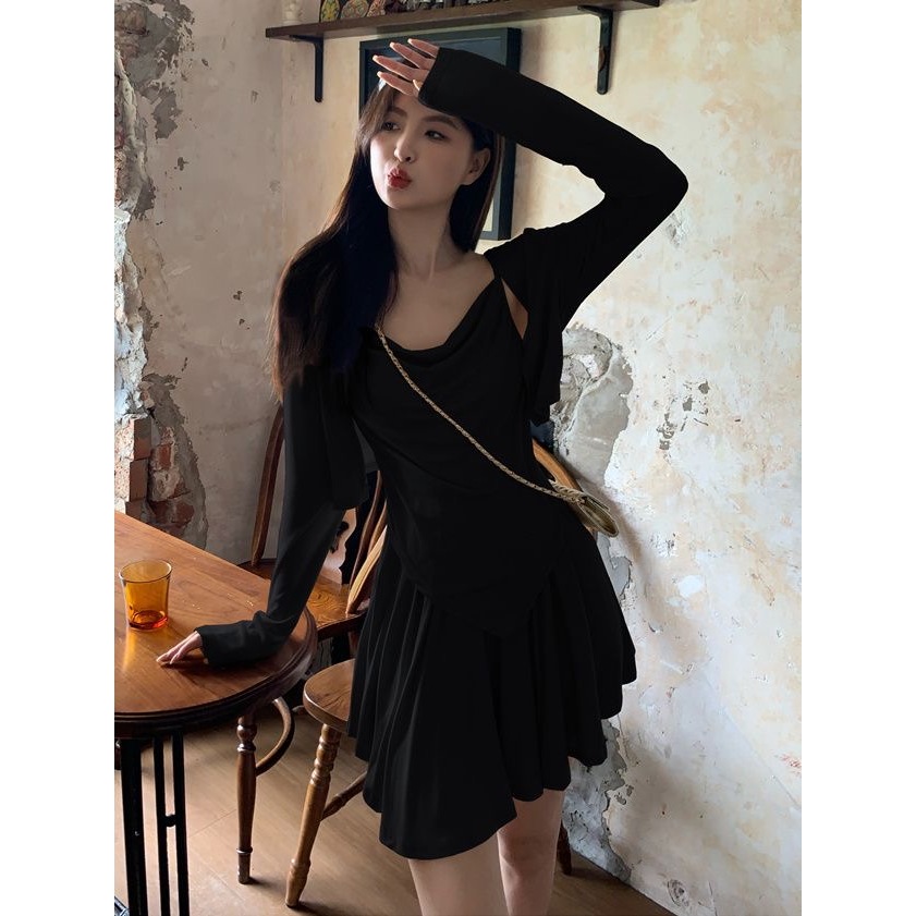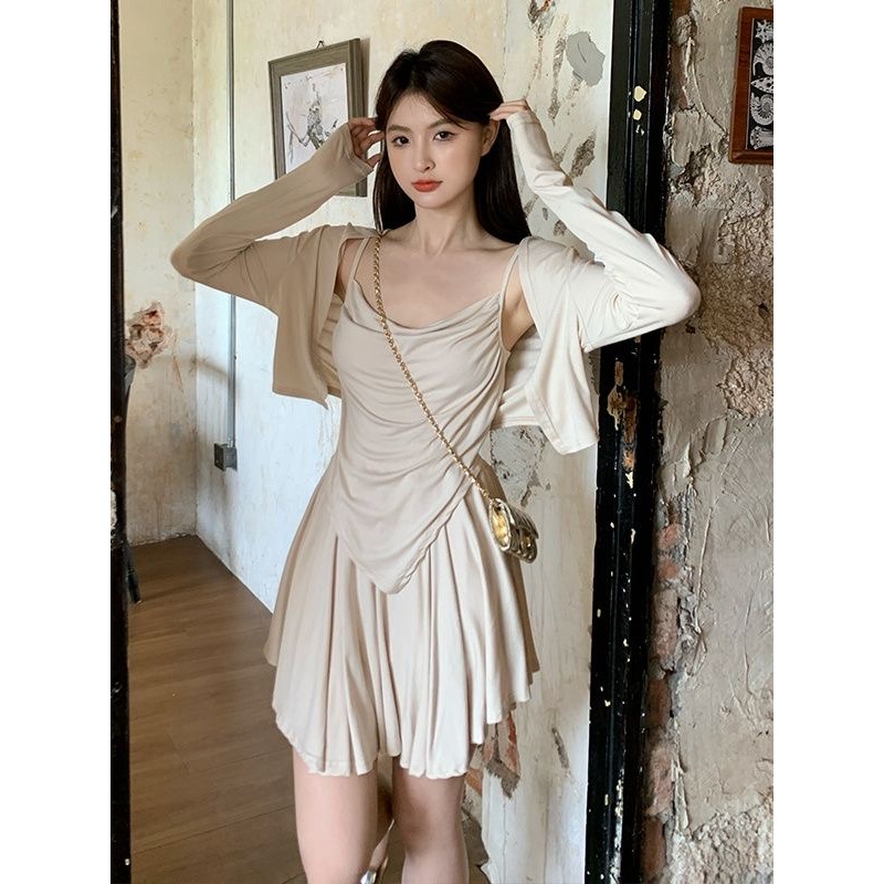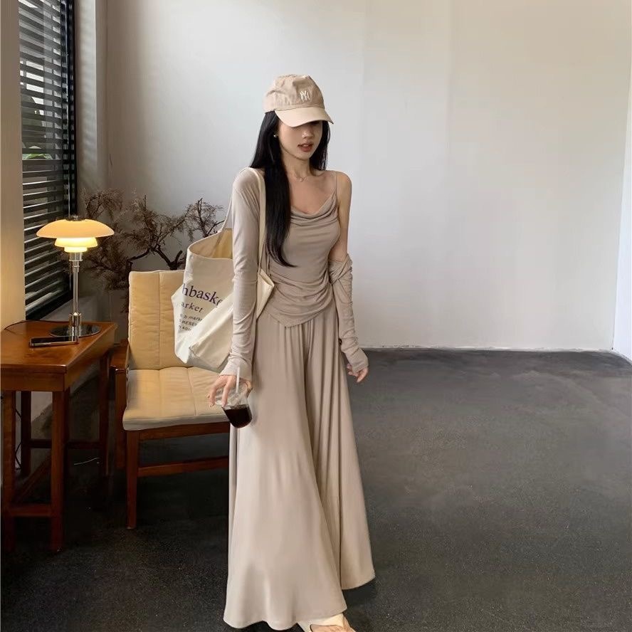 [Star]Set Tiga Potong Wanita Strecth Kasual Suspender Lengan Panjang