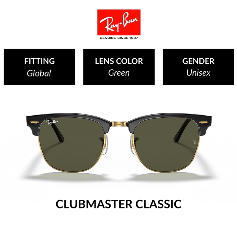 New 100 PERSEN Original Ray-Ban Kacamata Hitam CLUBMASTER RB3016 Sunglasses Black pria wanita Grey