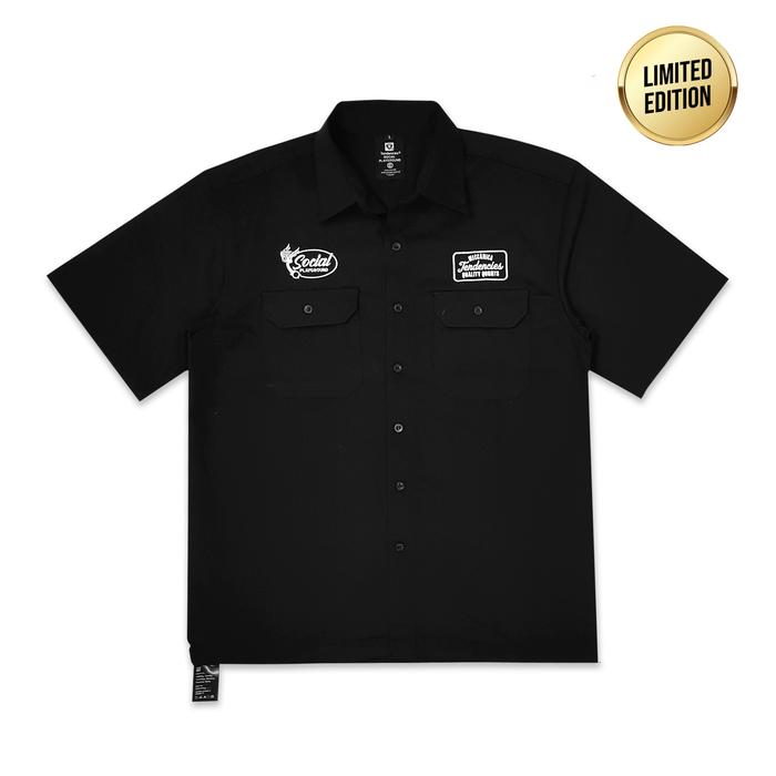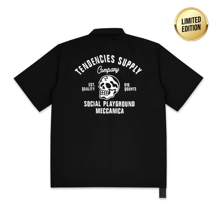 TENDENCIES Garage Meccanica Work Shirt Black Kemeja Kerja Kemeja Pria Lengan Panjang Pendek Jumbo
