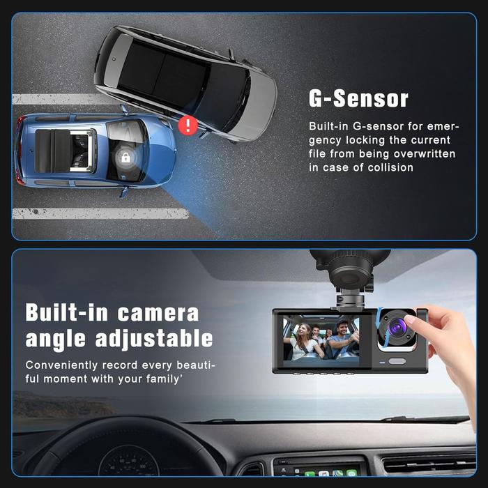 3in1 Kamera Mobil Dashcam WiFi FHD 1080P Kamera Dasbor 3 Saluran Depan dan Belakang Dalam Dash Cam