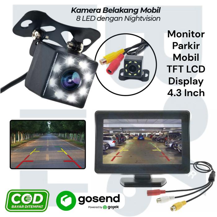 Paket Kamera Mundur Mobil Parkir Rear View LED + Monitor Waterproof Night Vision Siang Malam