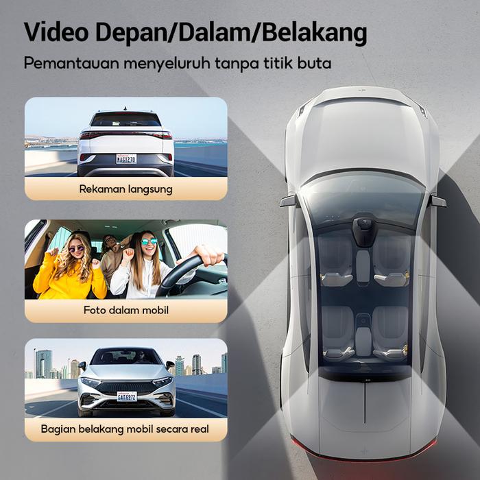 Pengiriman 24 jamDashcam Mobil WiFi 3 Kamera Resolusi 1080p HD Layar 2 Inci Night Vision Dual Lens