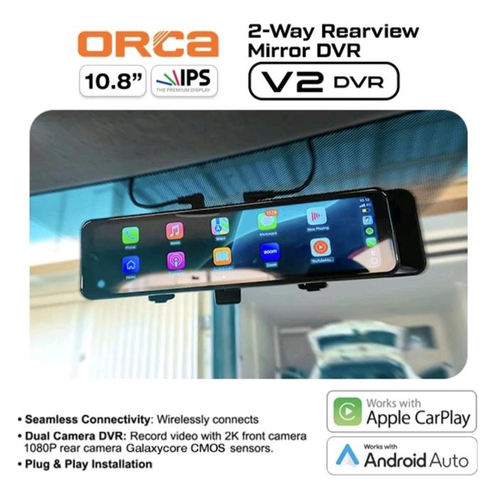 ORCA V2 DVR - Spion Dashcam Depan Belakang (10.8") CarPlay Android Auto