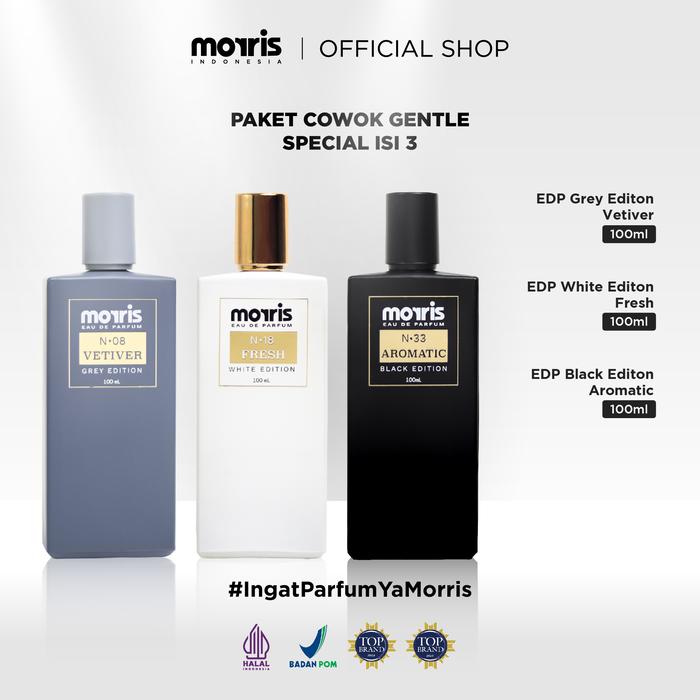 PAKET COWOK GENTLE ISI 3 Morris Parfum EDP Black Edition + White Edition + Grey Edition 100 ml