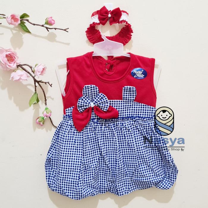 [P-044] Baju Bayi 0-6 bulan / Dress anak Perempuan - biru pink 0-6 bulan