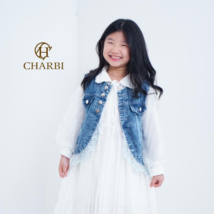 RACHEL DRESS - 2 IN 1 JEANS VEST WITH 2 LAYERED MALIKA LACE ANAK ANAK - CHARBI - 2-3 tahun