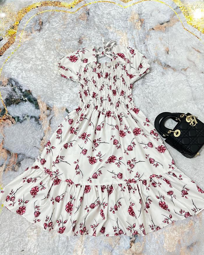 ZN FASHION - Jiwon Dress Anak Combinasi Motif Flower - KEMUNING HITAM