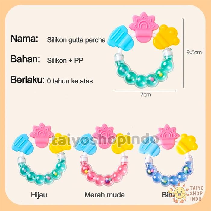 TAIYO Rattle Genggam Teether Kerincingan Bayi Silikon Gigitan Empeng Kerincing Baby Toys Mainan Anak - Rattle Hijau